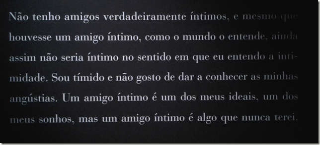 Até ao fim de Abril está na Gulbenkian uma exposição muito interessante sobre Fernando Pessoa. Os poemas, as histórias, os objetos, a vida desassossegada na procura de algo, a inquietação, a insatisfação, a desadequação, a ironia, a mente brilhante, tudo embrulhado em interatividade, luzes e escuridão.
